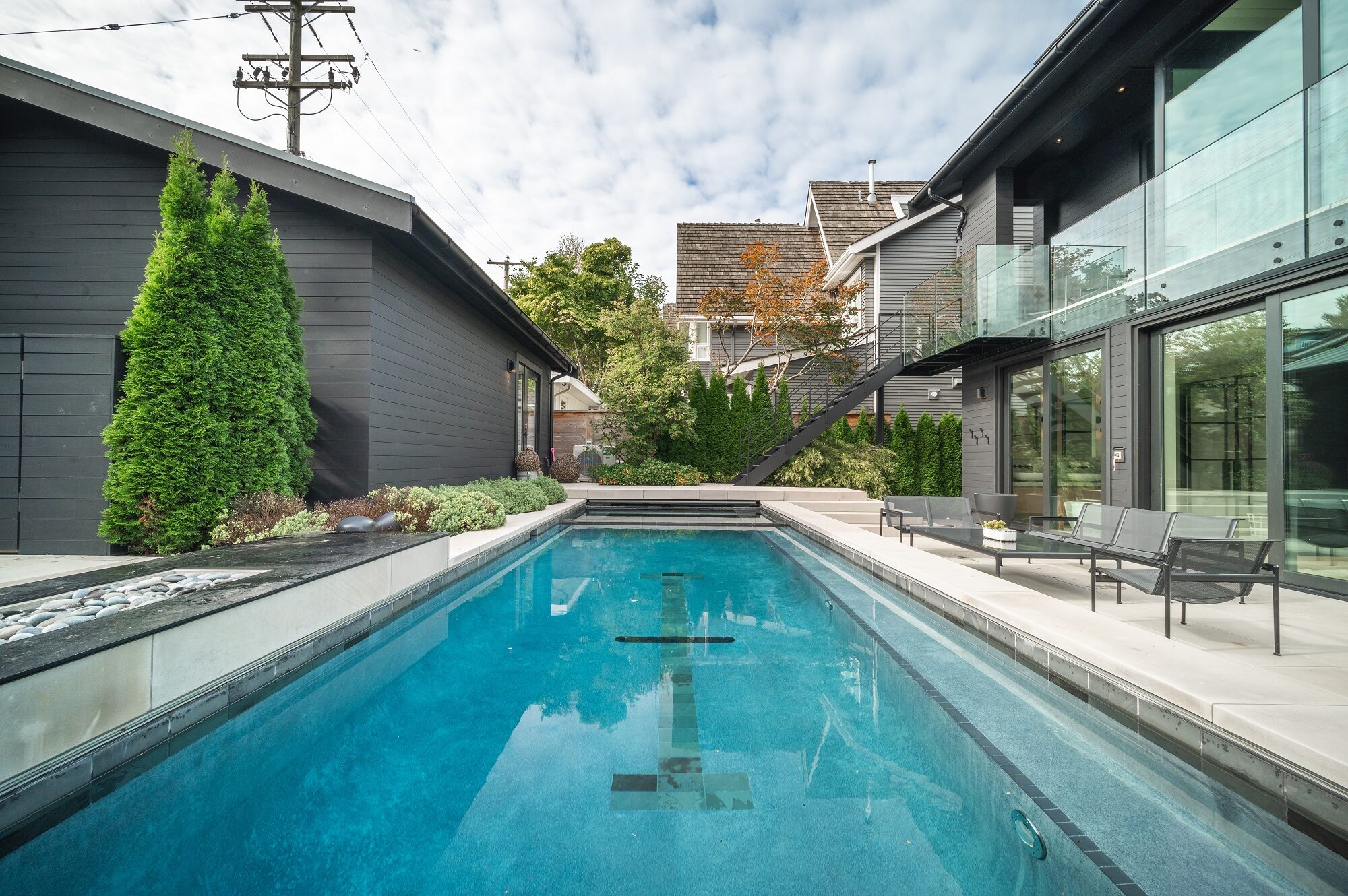 As swimming is considered one of the best all-over workouts, lap pool construction in Vancouver and throughout British Columbia is on the rise. Lap pools are great for friendly competitive races or even just a rejuvenating swim to release your cares at the end of a long day. These lap pool designs are long and narrow, often starting at 50’0” length and featuring a racing lane tiled into the pool finish.