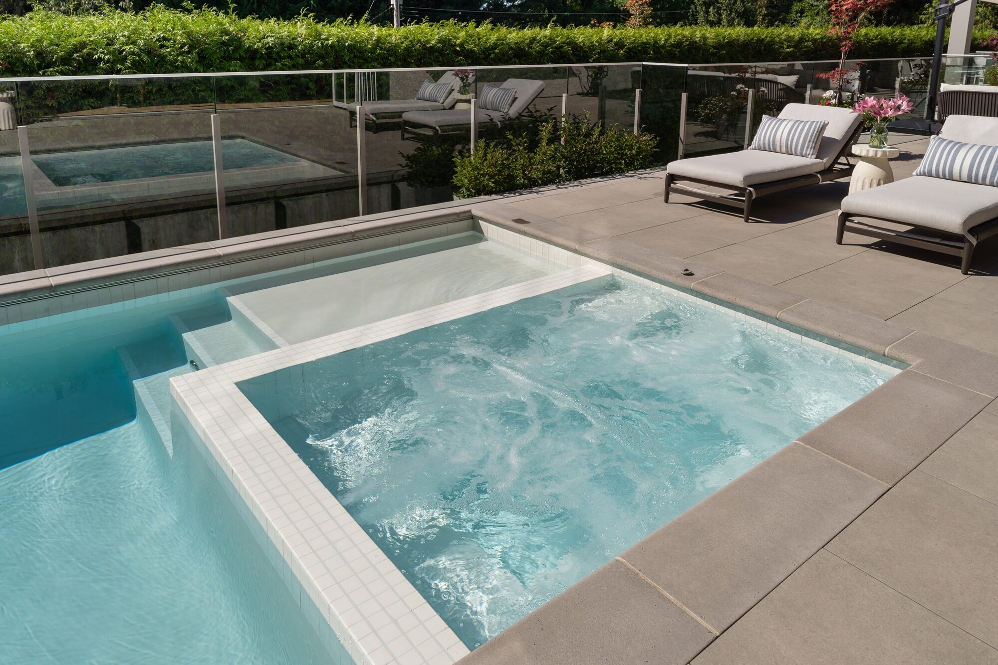 ALKA POOL has been building custom spas throughout British Columbia for over 60 years. Hot tubs can be standalone projects or built within the swimming pool itself. They can share equipment or be separate entities unto themselves. The beauty of concrete spa design is in the customization.
