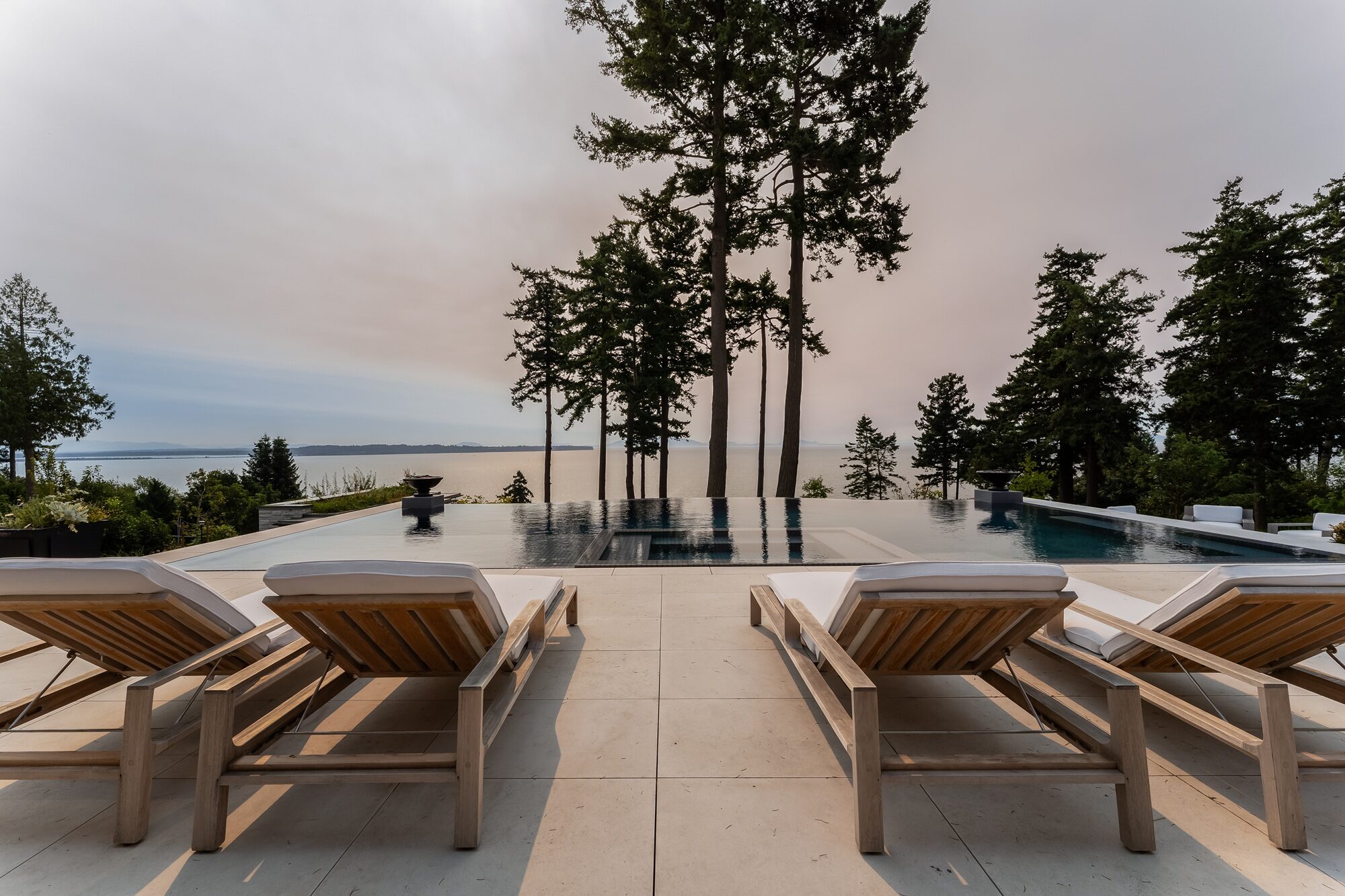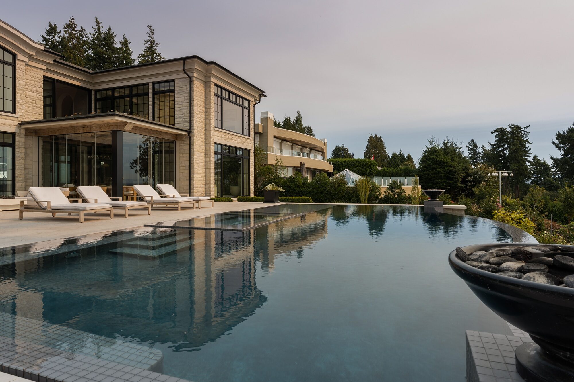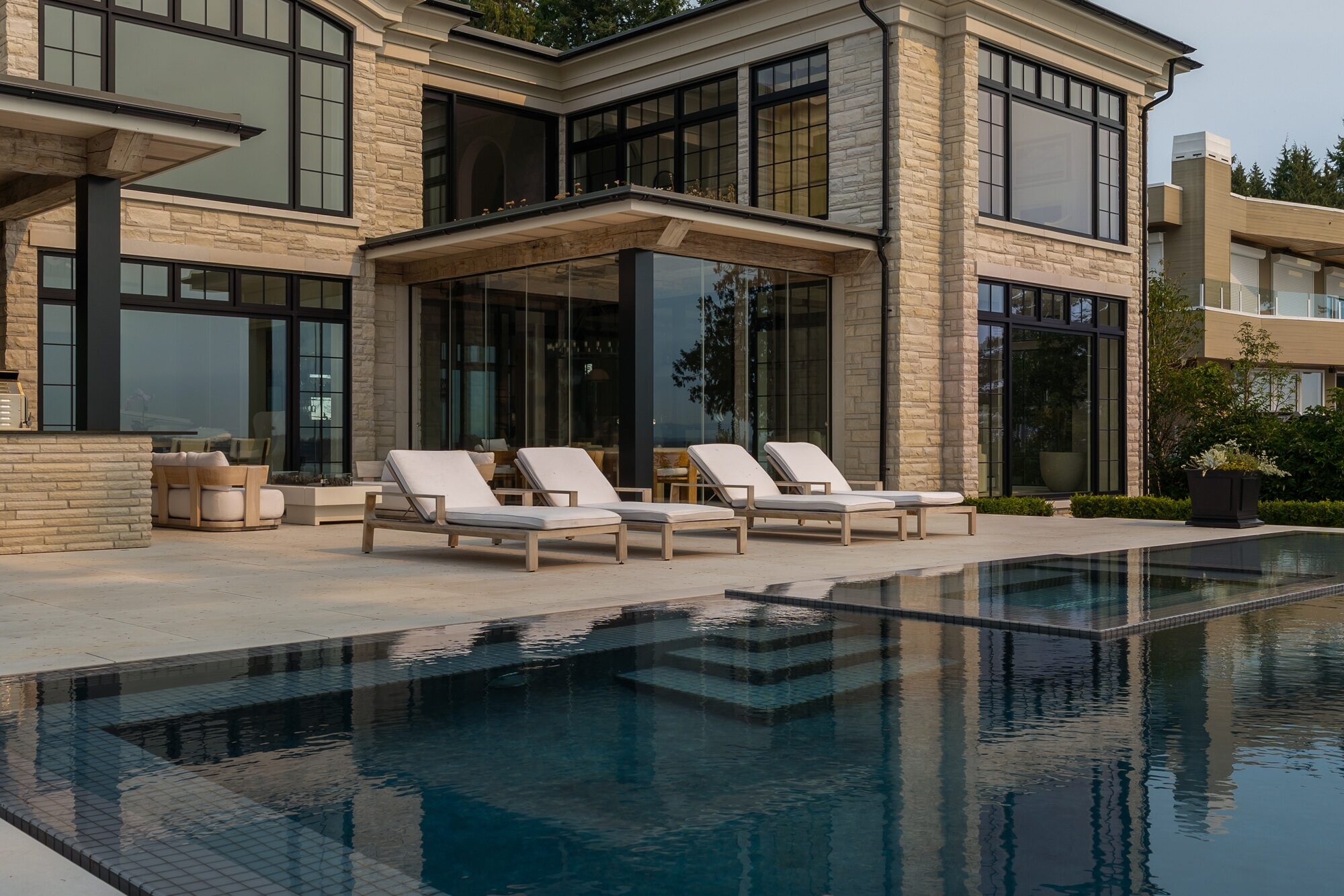 The combination of warm, tactile architecture and cool, glass‑tiled waterscapes creates a layered experience: invigorating swims, restorative soaks, and bracing plunges all contained within the privacy of the home. Together with the dramatic outdoor flood edge pool and spa, this estate offers a holistic aquatic environment that is as visually compelling as it is indulgent to use in every season.