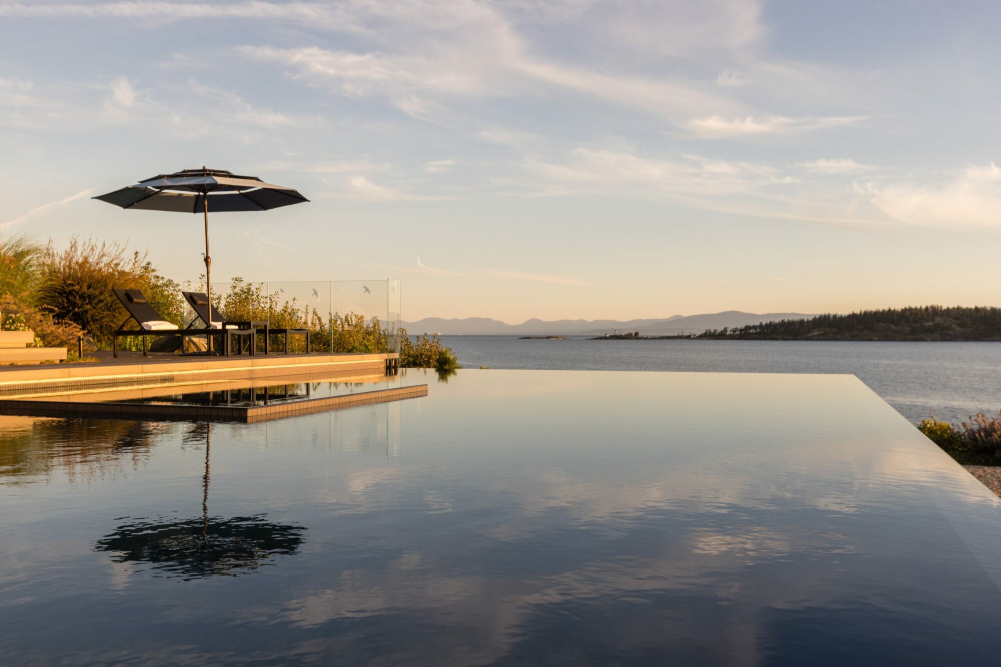 The design’s interplay between water, stone, and open space echoes the serene coastal context, offering an effortless transition from interior living areas to the poolside retreat, crafted to celebrate the unique setting of Halfmoon Bay.